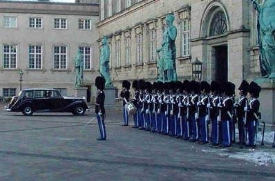 ![]() Morgensol. Set fra en belægningsstue i Gothergade | ![]() Amalienborg Slot. Opmarch til frontmarch foran Residenspalæet | ![]() Amalienborg Slot. Residenspalæet |